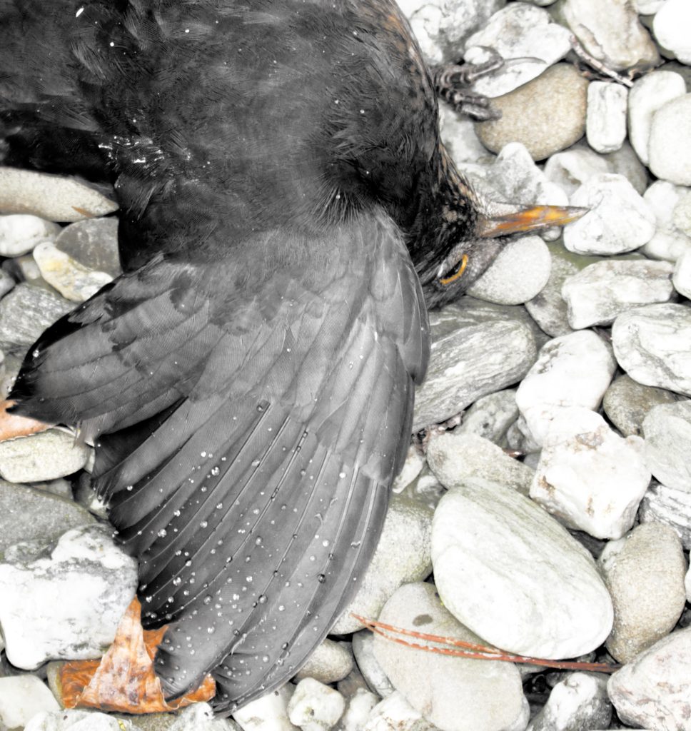 A bird that wouldn’t ever arise had its head pecked to bare skin by its mate which, intensely, frustratedly over two days tried to get it up again, to its part in the egg-laying contract made between them.