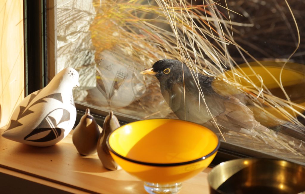 A blackbird that took exception to a reflection of itself pecked at the window for a month. Pasting newspaper inside the glass didn’t deter it, and I feared for the integrity of its beak.