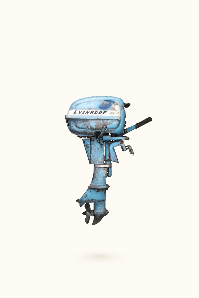 Some of the motors I photographed were heavily used, worn out, seized, dead. Others were nearly 100 years old and yet restored to minty near-new condition. Most had been properly abused for hundreds, if not thousands, of soggy nautical hours until they had sputtered to obsolescence, their histories written in dents, scratched paint, and dinged props. Today, they are destined for nowhere but a dusty barn, a scrap metal recycler, a curiosity at a boat show, or a listing in the Antique Outboard Motor Club classifieds. Their aquatic jig in the brine has long ago expired.