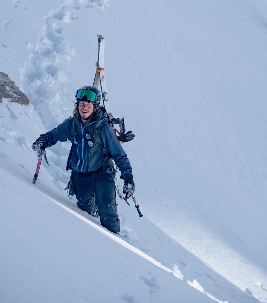The trip, their first into Lake Hope, wasn’t without its challenges. For one, the initially-bluebird weather packed in after three days, and the crew had to make the decision to get out and head back early via Two Mile Hut. And for Ryan, there was also the juggle of taking part in the fun while being in charge of the camera. “Some of the bigger lines we wanted to do, I wanted to do them too, and so the question arose, how do we film the filmer? A lot of the footage of me was going up with the drone and self-shooting it by myself – so putting the drone up, locking up the controller, essentially so it doesn’t push buttons in my bag. Then also setting up my GoPro, doing the line, and then having to deal with bringing the drone back down before immediately having to shoot my three other friends who are also coming down. It can get pretty full on,” Ryan explains.