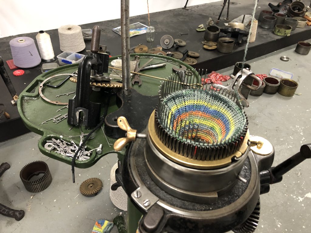 Lurking among the innumerable Facegroups, alongside Genuinely Stoked Goats and the Comic Sans Appreciation Society, there is a 5.5K-member sock knitting community. Not just regular sock knitters. These are Circular Sock Machine knitters, also known as crankers. Conversation centres around yarn tension and brass cylinders, and images show an array of lovingly-oiled machines lovingly cranking out colourful socks, as if electricity were never invented, and as if this were a good thing.
